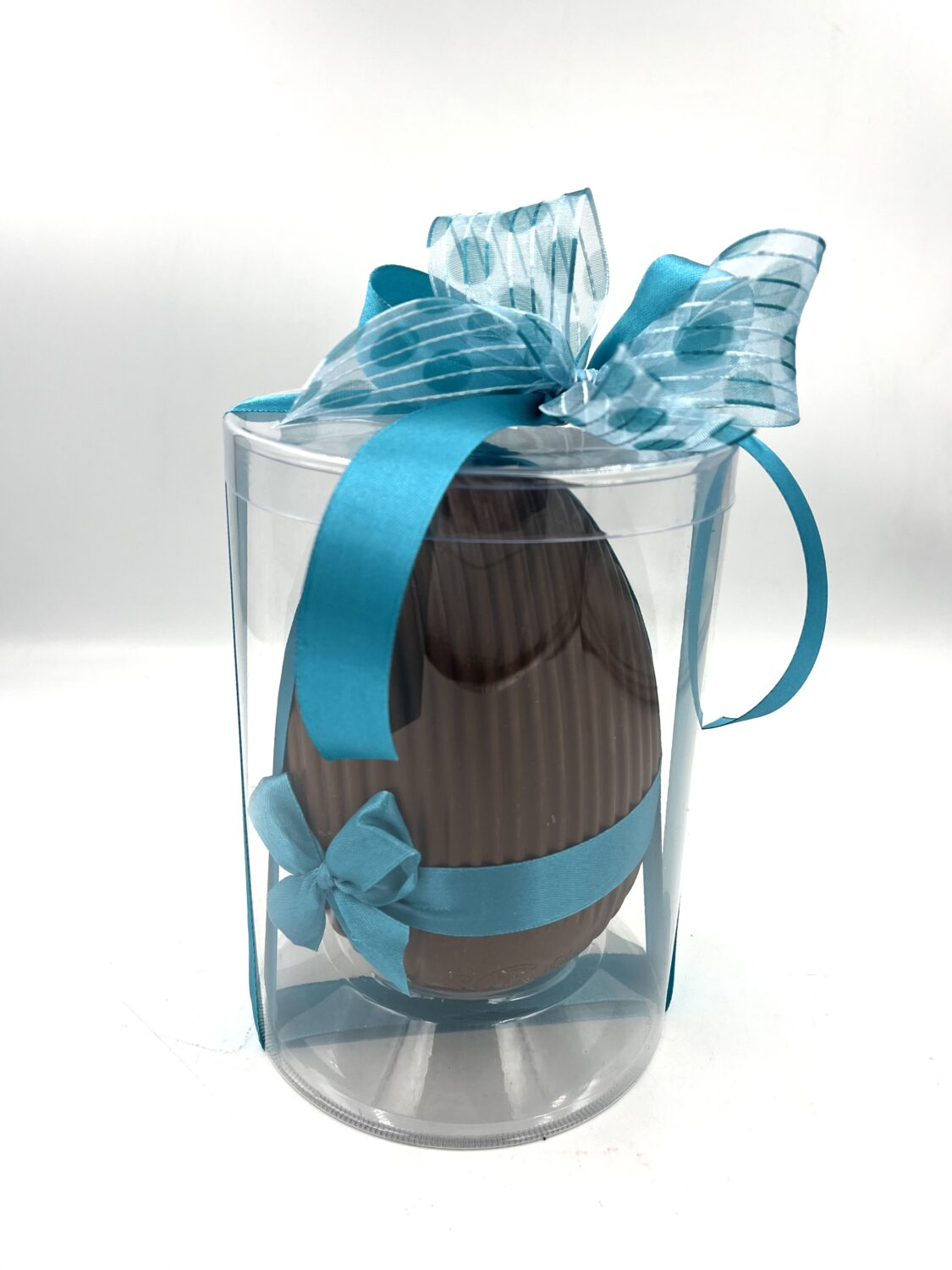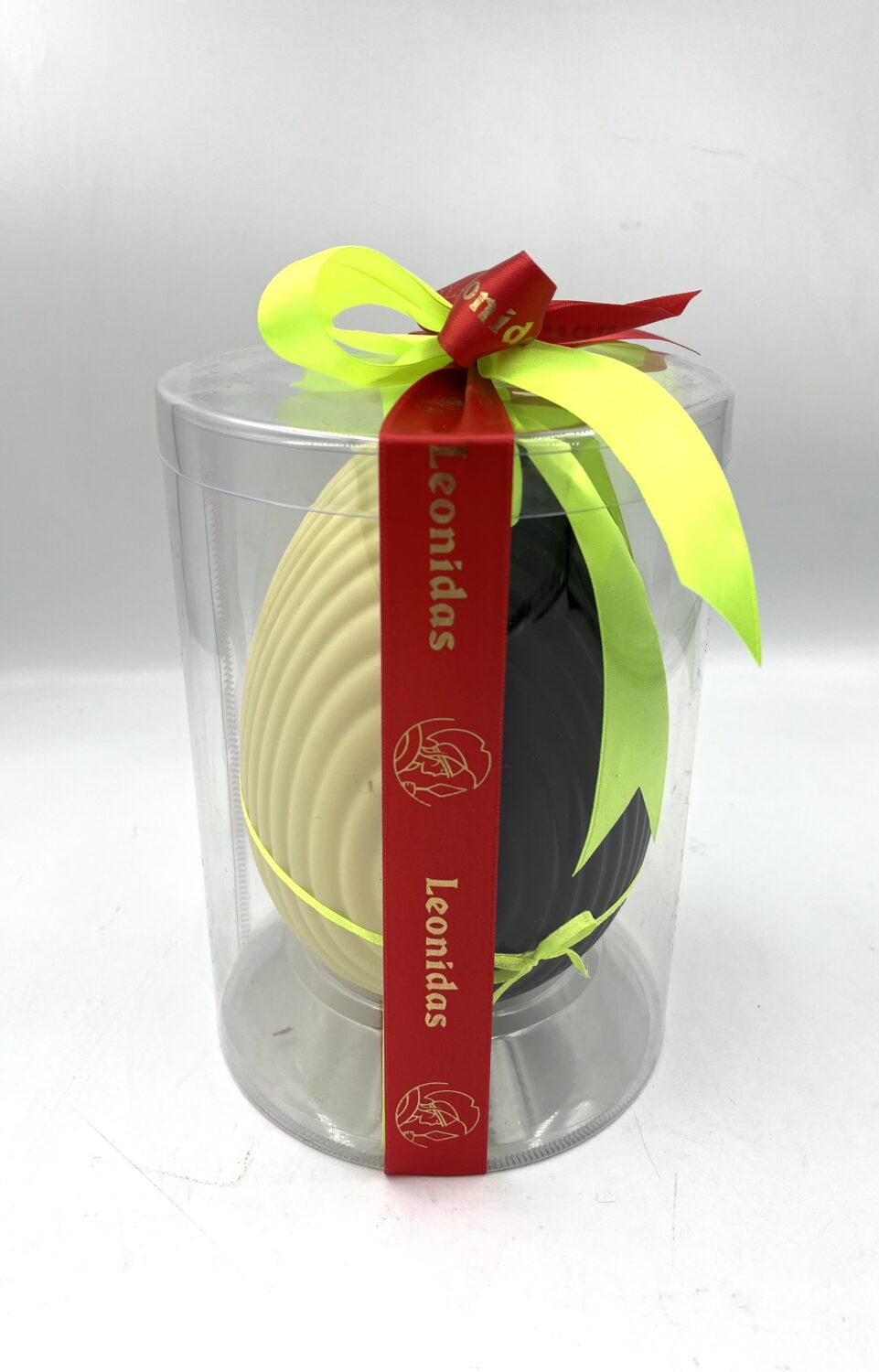 Κλασσικό αυγό Large LEONIDAS (Y~14,50cm) μέσα σε διάφανο κυλινδρικό κουτί.