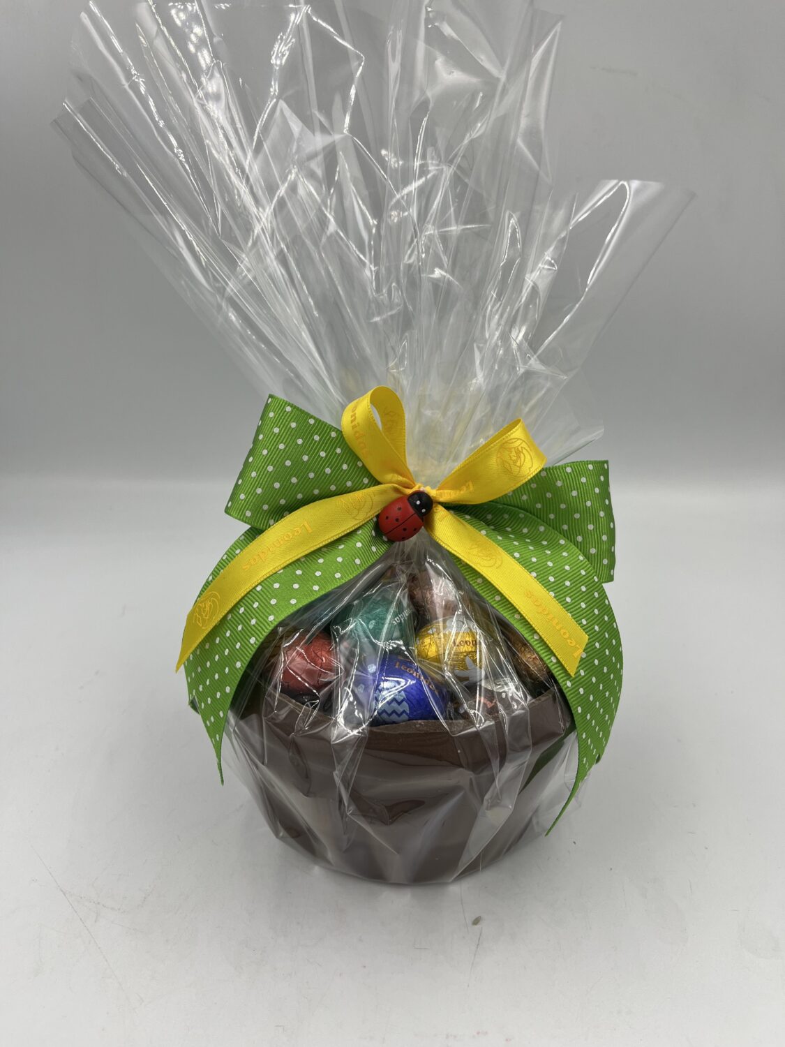 Σοκολατένιο καλάθι LEONIDAS σε σοκολάτα γάλακτος ή σοκολάτα υγείας (Σημειώστε την επιλογή σας στα σχόλια).Το καλάθι είναι γεμισμένο με 14τμχ σοκολατοαυγουλάκια σε διάφορες γεύσεις (ΤΥΧΑΙΑ ΕΠΙΛΟΓΗ).